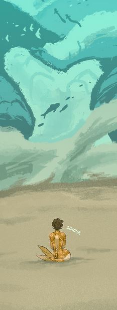 Castle Swimmer est une série de Wendy Lian Martin disponible sur la plateforme Webtoons de Naver, qui met en scène deux personnages, Siren et Kappa, liés l’un à l’autre par une prophétie. Kappa est « le Phare », celui envoyé par Dieu pour accomplir toutes les prédictions de tous les peuples marins ; Siren est le prince des requins, destiné à tuer le Phare afin de briser la malédiction qui pèse sur son peuple depuis des décennies. Tous deux ont donc leur destin déjà bien tracé… Sauf que ni l’un ni l’autre ne trouve leur sort très enviable. Kappa, qui en a assez de jouer les « accomplisseurs » (oui, oui, ce mot existe) de prophétie, n’a pas non plus envie de finir embroché pour sauver qui que ce soit. Quant à Siren, rien que l’idée de tuer un autre être vivant le répugne. Mais comment alors briser la malédiction qui pèse sur son peuple ?