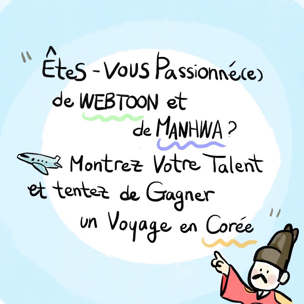 En parallèle, le service culturel de l’Ambassade de la République de Corée continue de promouvoir le webtoon par le biais d’expositions, de concours et même de conférences. Ne manquez pas la conférence en ligne de Nicolas Finet, éditeur, journaliste, et ancien chargé de mission Asie du Festival international de la bande dessinée d’Angoulême, qui dresse l’état des lieux de la bande dessinée coréenne en France, retraçant l’histoire de sa diffusion dans l’Hexagone, depuis les premiers albums pub. Comme nous l’explique l’expert du neuvième art, le webtoon est « un véritable renversement de perspective », et la possibilité que « le travail des artistes puisse venir jusque dans les mains du public à qui il est destiné ». En passe de « devenir un possible modèle de développement, un relai de croissance potentiel […] pour la bande dessinée tel qu’on l’entend en France et en Europe ».