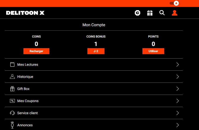Pour chaque nouvelle inscription, il y a une réduction de 50 % sur l’achat de coins. Les coins sont utilisables sur ordinateur et sur mobile, puisqu’il n’y a pas d’application Delitoon X. On distingue les coins des coins bonus, qui eux doivent être utilisés trente jours après acquisition. Enfin, on peut débloquer des coins bonus grâce à l’accumulation de points.