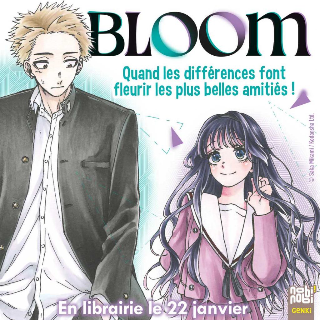 Bloom, premier tome, sera disponible en librairie dès le 22 janvier 2024. Publié par nobi nobi! dans la collection Genki, ce manga signé Saka Mikami promet d’être une série incontournable pour les amateurs de comédies romantiques.