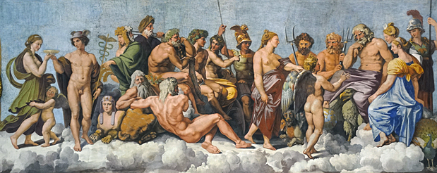 En effet, les premières déesses et les premiers dieux proviennent de l’union de la Terre et du Ciel, Gaïa et Ouranos. Cronos est l’un de leurs fils, et est le père des Olympiens. Si Cronos agit comme le chef de sa fratrie, c’est parce qu’il a permis à ses frères et sœurs de se libérer de leur père Ouranos. Ce dernier était resté uni à Gaïa, et empêchait leurs enfants de naître. Et c’est à l’aide d’une faucille fabriquée par sa mère que Cronos a tranché le sexe de son père. On raconte – selon les versions – que lorsque le sexe d’Ouranos tomba dans la mer, de l’écume produite naquit la déesse Aphrodite. Cronos a aussi libéré les Cyclopes et les Hécatonchires qu’Ouranos avait condamnés à rester au Tartare, la prison des Enfers.